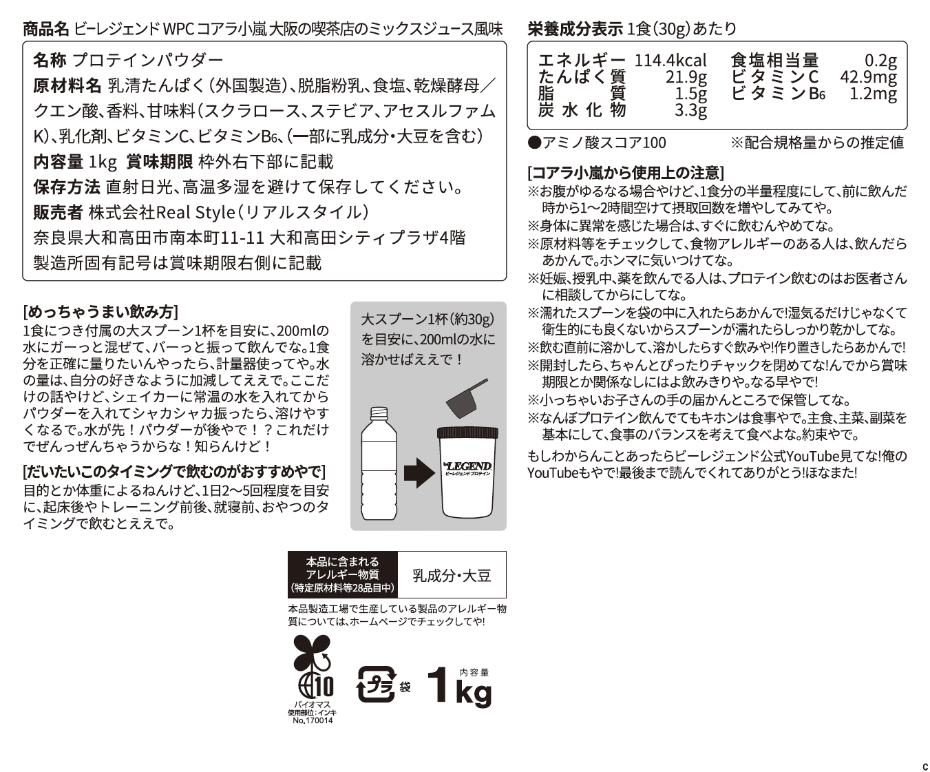 乳清たんぱく(外国製造)、脱脂粉乳、食塩、乾燥酵母/クエン酸、香料、甘味料(スクラロース、ステビア、アセスルファムK)、乳化剤、ビタミンC、ビタミンB6、(一部に乳成分・大豆を含む) |